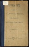 Одесское Общество истории и древностей. Указатель статей, помещенных в I–XX томах Записок императорского Одесского общества истории и древностей . - Одесса : Экономическая тип., 1898. - 43 с. - Отдельный оттиск из 21 т. “Записок императорского Одесского общества истории и древностей”. - Б. ц.