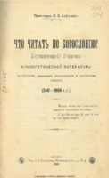 Светлов, Павел Яковлевич. Что читать по богословию? : систематический указатель апологетической литературы на русском, немецком, французском и английском языках (248-1906 гг.) / П. Я. Светлов. - Киев : Тип. С. В. Кульженко, 1907. - 265 с.