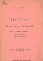Куліш, Пантелеймон Олександрович (1819—1897). Крашанка русинам і полякам на Великдень 1882 року видана типом другим з додатком посліслов’я / П. О. Куліш. - Львів : з Друк. Т-ва ім. Шевченка під зарядом К. Беднарського, 1882. - 40 с. -