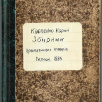 Тобилевич, Иван Карпович (Карпенко-Карый, псевдонім ; 1845—1907). Збірник драматичних творів Івана Карпенко-Карого / І. К. Карпенко-Карий. - Херсон : Тип. Аспера, 1886. - 140 с.