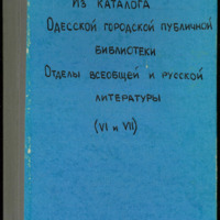 Публичная Одесская городская библиотека. Из каталога Одесской городской публичной библиотеки. Отделы всеобщей и русской литературы (VI и VII) / Публичная Одесская городская библиотека. - Одесса : “Славянская” типография Н. Хрисогелосъ, 1901. - 68 с. - Б. ц.