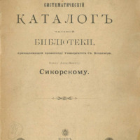 Систематический каталог частной библиотеки, принадлежащей профессору Университета Св. Владимира, Ивану Алексеевичу Сикорскому / [сост.] И. А. Сикорский. - Киев : Типо-лит. Высш. утв. Т-ва И. Н. Кушнерев и К°, в Москве. Киевское отд., 1895. - VI, 424 с.