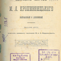 Збiрник творiв М. Л. Кропивницького виправлений i доповнений / М. Л. Кропивницький. - Вид. 2-е. - Харків : Тип. Каплана и Бюрюкова, 1885. - 273 с. : нот.