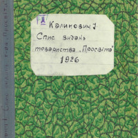 Опис видань товариства “Просвіта” у Львові, 1868–1924 / І. Т. Калинович. - Львів : Накладом Товариства “Просвіта” у Львові, 1926 (З друк. Видавничої спілки “Діло”). - 48 с. - (Видання товариства “Просвіта” ; ч. 699. Загальна бібліотека ; Ч. 7). - Передрук з “Бібліотечного порадника".