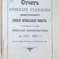 Отчет Киевского Отделения Императорского Русского Музыкального Общества и учрежденной при нем Киевской Консерватории за 1913-1914 г. (С 1-го Сентября 1913 года на 1-е Сентября 1914 года). - Киев : Тип. «С. В. Кульженко», 1914. - 135, 44 с.