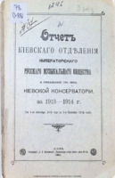 Отчет Киевского Отделения Императорского Русского Музыкального Общества и учрежденной при нем Киевской Консерватории за 1913-1914 г. (С 1-го Сентября 1913 года на 1-е Сентября 1914 года). - Киев : Тип. «С. В. Кульженко», 1914. - 135, 44 с. -